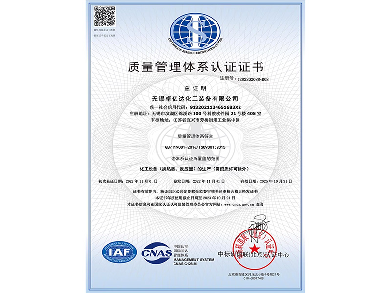 無錫卓億達化工裝備有限公司 質量合格、誠信經營、互惠互利、真誠相待